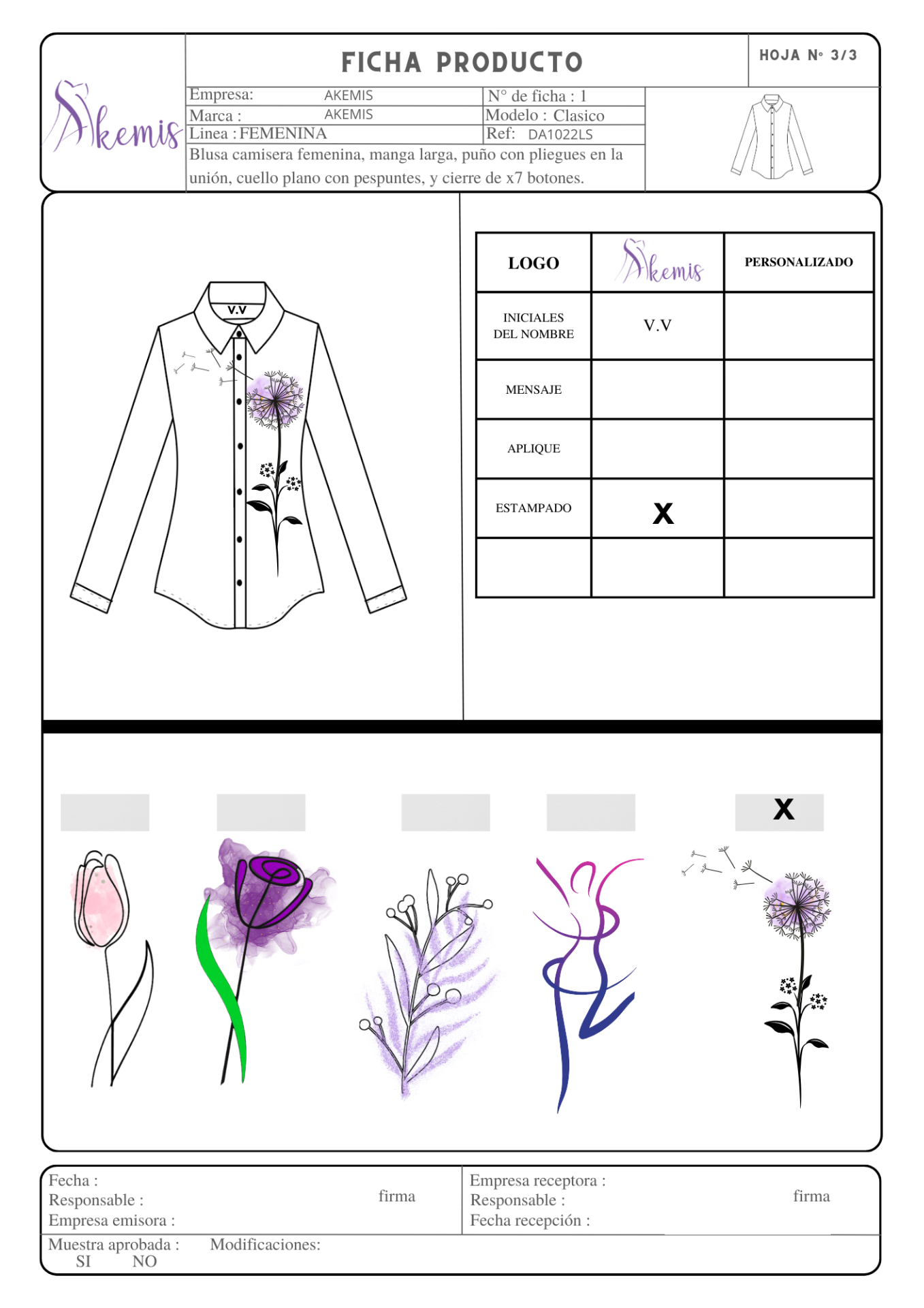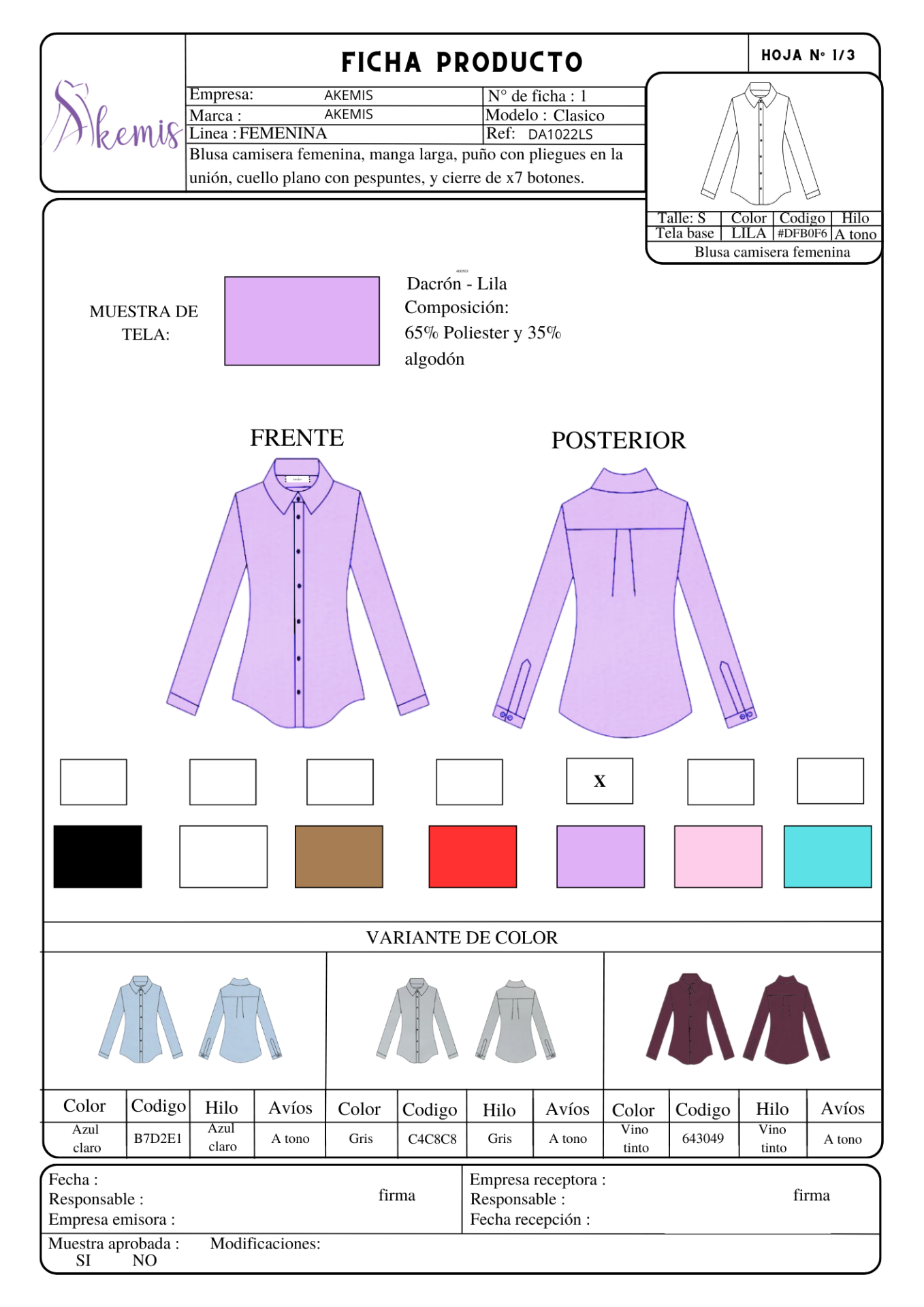 - Por medio de ficha técnica de producto indicar los cm de anchos y largos que desean aumentar o disminuir a la prenda seleccionada.